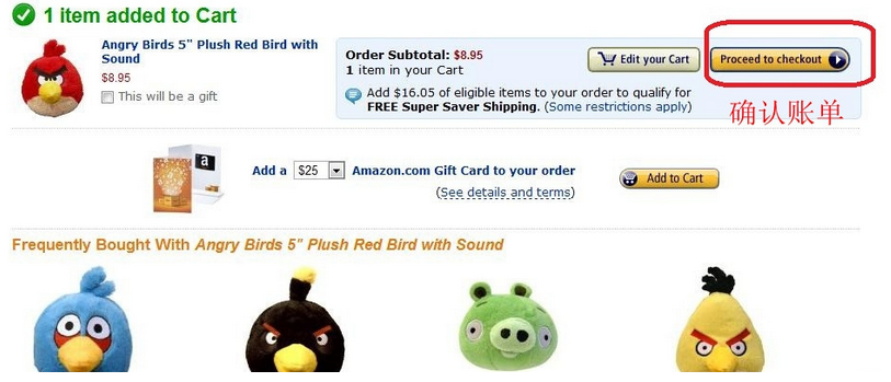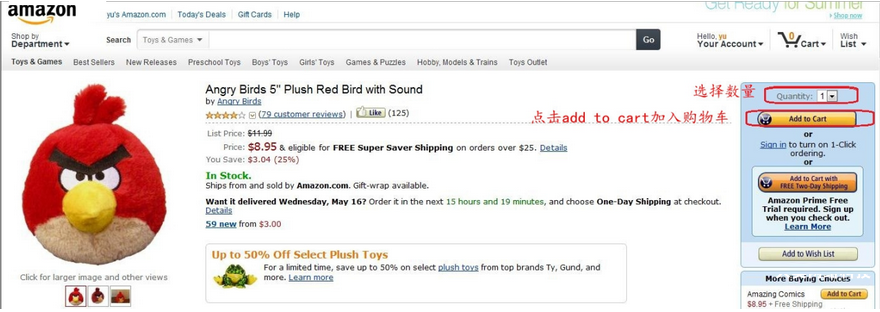 4、以上就是amazon注册完成的过程,接下来就是进行购物了。找到您需要购买的商品后,点击右边的”Add to Cart"(添加到购物车)。