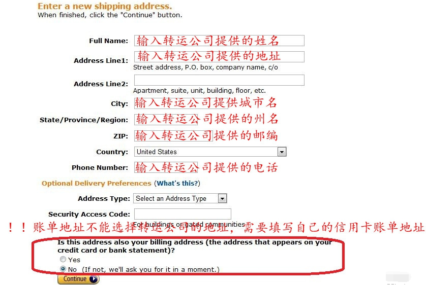 6、接下来页面跳转至“Enter a new shipping address”(输入一个新的发货地址),填写以下信息。